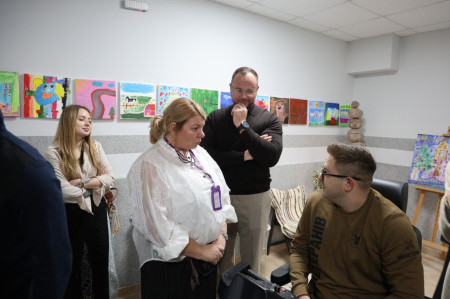 «Я дякую за ту велику працю, яку ви робите вже багато років. Сотні, а можливо й тисячі наших військових пройшли реабілітацію через мистецтво у вашій студії «Пятерня». Дякую за роботу з дітьми. Радіємо, що змогли знайти для вас приміщення. Бажаю, щоб тут завжди вирувало життя, адже велика кількість людей зараз потребують реабілітації, а реабілітація через мистецтво – це прекрасно. Дякую вам за виховання сина – Героя. Світла і вічна пам’ять йому та всім нашим загиблим Героям», – сказав Ігор Поліщук.