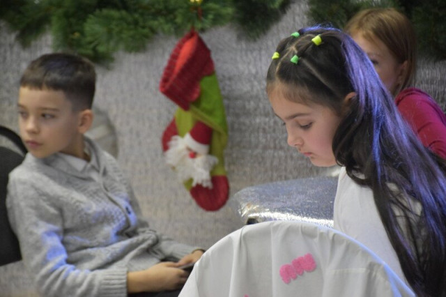 І ось настала довгоочікувана мить – зустріч зі святим Миколаєм. Діти мали можливість досхочу поговорити з ним, сидячи біля каміна. Школярі розповідали про свої мрії та добрі справи: як навчалися нового, допомагали родині, підтримували друзів. Після розмови поверталися з чималими пакунками солодощів.