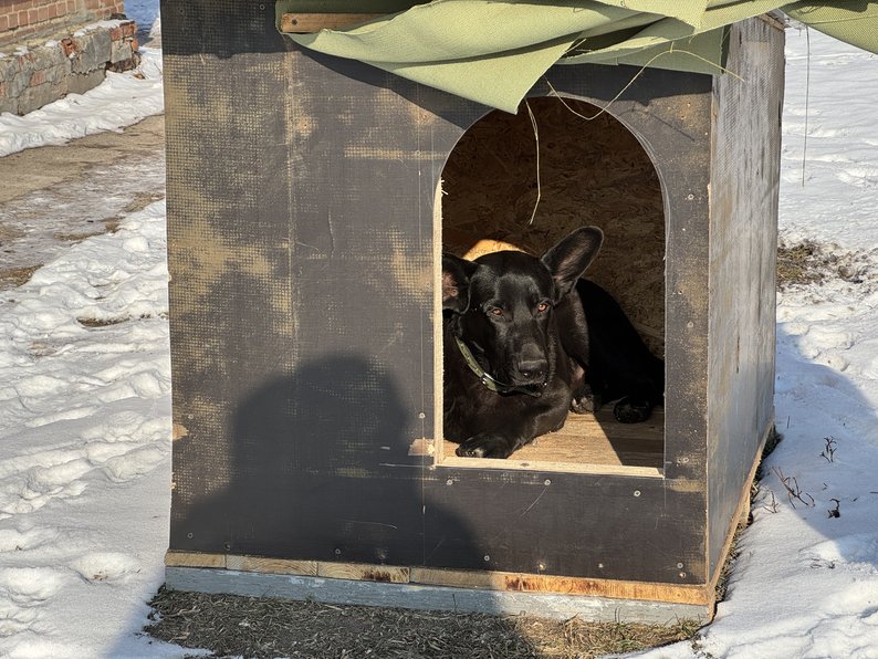 "Будку побудували дуже велику йому, гарну, утеплену. Товсті стінки, дно велике, там утеплене в нього все", — додала майстриня.