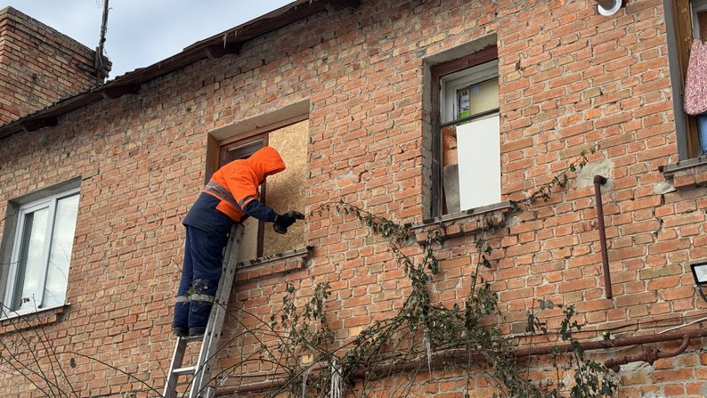 Комунальники допомагають людям закрити вікна від холоду. Суспільне Полтава