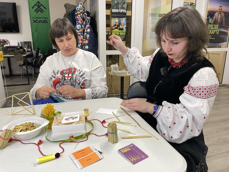 Процес виготовлення різдвяних “павуків” із соломи. Суспільне Полтава