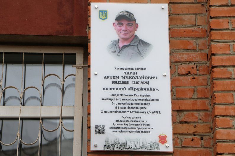 Меморіальна дошка воїну Артему Чаріну. Фото: Полтавська міська рада