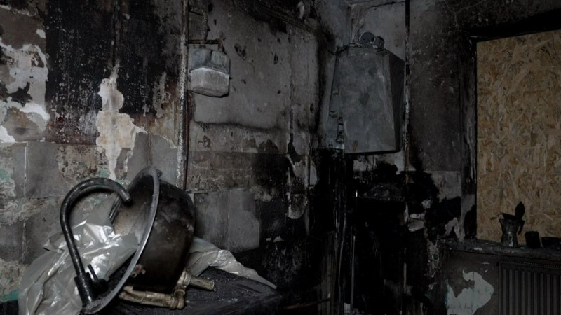 "Нічого немає, все згоріло. Я ще чекаю на хлопців, бо мають сміття виносити. Тут була спальня, все вигоріло".
