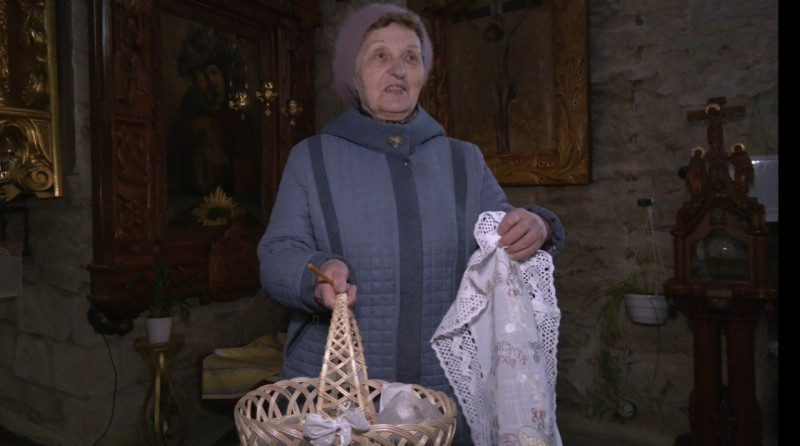 "Ковбаска, паска, яйця, сирок, хрін, сіль. Оце все, що треба сьогодні принести, я так старалась, щоб все було. Я вдома пекла кожен рік паски. У нас вдома, як ще були батьки живі, була така піч, що за один раз все закладали і там випікали такі смачні, красиві, високі".
