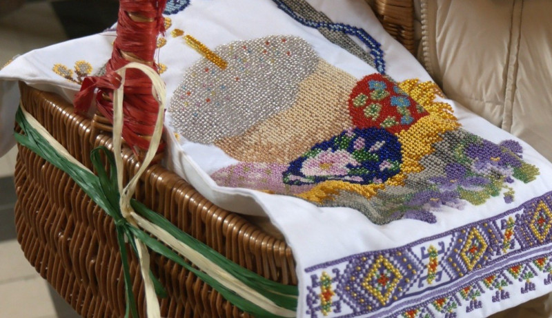 "Це вручну вишивала моя сестра бісером такий великодній рушник. У кошику традиційно домашнє масло, пасочка, яку спекла моя донька. Обов’язково святимо одне яєчко без шкарлупи і потім вся родина , коли сідає до столу, ми це яєчко ріжемо на кількох членів родини і кожен з’їдає по шматочку і так ніби одне ціле", — розповіла Людмила Тележинська.