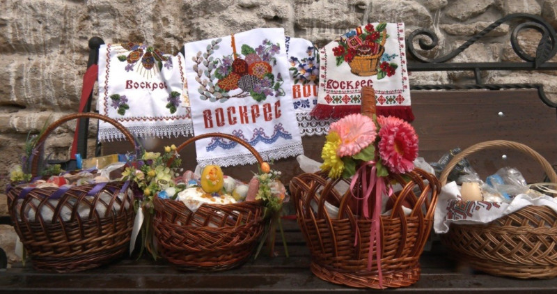 Щоб освятити Великодній кошик до Кафедрального собору Різдва Христового Православної церкви України прийшла Ольга Галушко. Жінка родом з Донеччини. Розповідає, до Тернополя переїхала через війну. Показала, що у кошику: