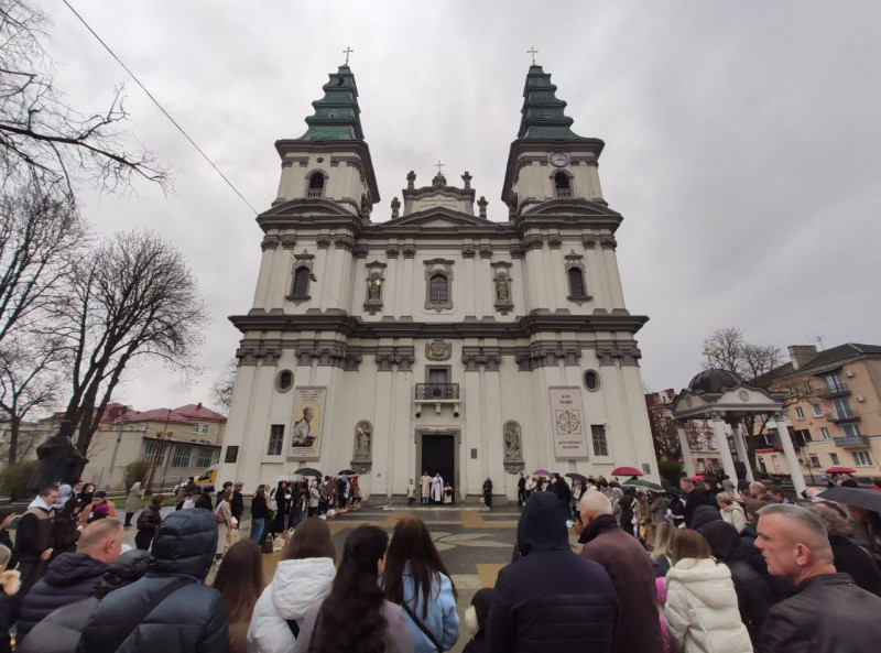В Архикатедральному соборі Непорочного зачаття пресвятої богородиці УГКЦ у Тернополі свій великодній кошик освятила Людмила Тележинська.