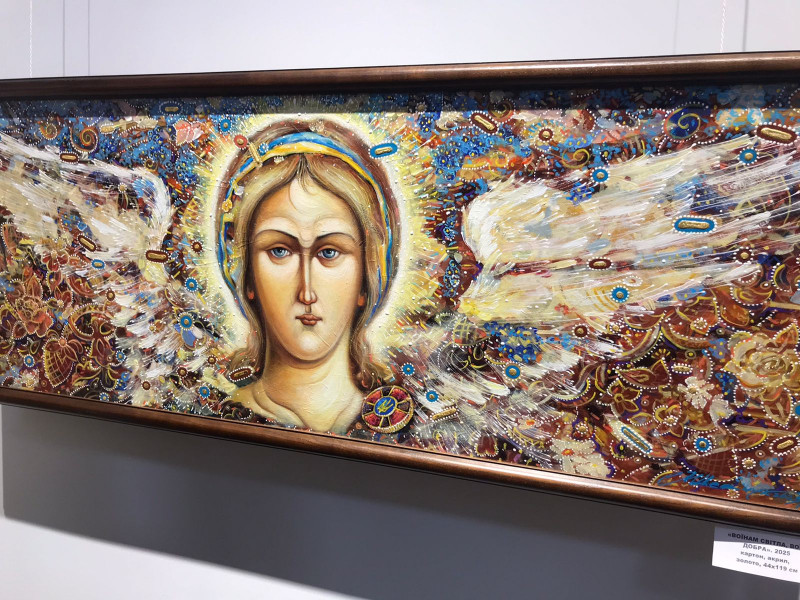 Найстарша робота тут з 96-го року. Найновіша написана в останню ніч перед екпсозицією. Це Ангел-ЗСУ, який називається "Воїнам світла, воїнам добра". Ми бажаємо того кожному з них. Надіюся таких виставок буде ще багато. Тематика однозначна, це Україна, любов до України, захист, підтримка українського війська", — розповів художник.