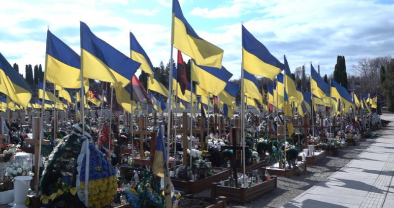 Зараз прибираємо могилу Барановського Володимира. Це житель Тернополя, як нам розповідали на першій зустрічі. Він був призваний до лав Збройних сил України і загинув на запорізькому напрямку", — говорить Оксана Уніят.