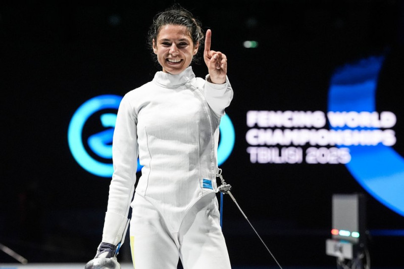 Шаблістка Влада Харькова після перемоги у фіналі ЧС-2025 з фехтуванні . FIE/Eva Pavia Gomez/Augusto Bizzi