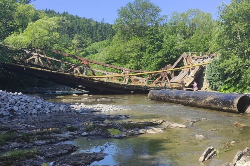 Обваений міст на Закарпатті 24 червня. Фото: Андрій Гісем/Суспільне Ужгород