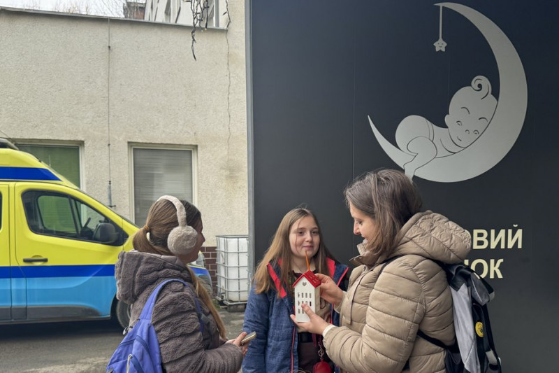"Ми навмисне принесли сьогодні будиночок, тому що пологовий будинок є першим місцем, першим будинком для багатьох немовлят і для цих дівчаток також. Аби світло завжди перемагало темряву. Ви знаєте дуже добре, що таке життя. Ви його перші бачите", — звернулася до працівників пологового будинку Вікторія Жуйко.
