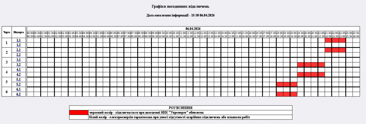 6 квітня за вказівкою НЕК “Укренерго” з 18:00 вводяться в дію графіки погодинних відключень.