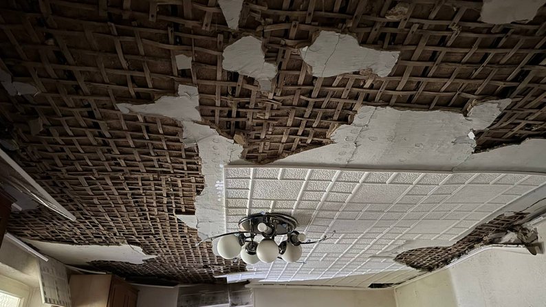 "Я проснулася, почула, що ракети летять, підвищена небезпека, але втекти не встигла. Воно як бахнуло, хата затрусилася, все посипалося, біло було від штукатурки. Від вибухової хвилі в кімнатах з боку прильоту все посипалося, в кухні, в спальні, повилітали вікна, карнизи позривало, штори порвало. Стеля майже вся обвалилася, і там, де ми спали, обвалилося. В гаражі, в літній кухні дах знесло, шифер розлетівся. На городі валяються осколки. На хаті кришу погнуло", — розповіла Надія Боднар.