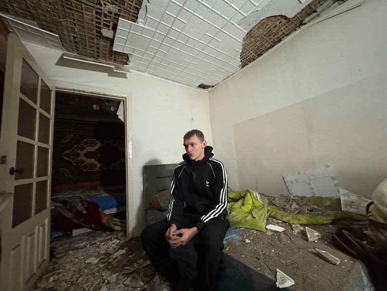 Павло Боднар у будинку, який зазнав руйнувань внаслідок обстрілу РФ. Суспільне Вінниця