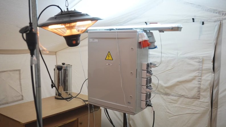 "У нас є 32 розетки, 380 вольтів, можна принести домашні станції підзарядити, будь-які ґаджети. Тут ви приходите, заряджаєте ґаджети, можна сидіти, чекати, можна залишати телефон чи павербанк", — сказав Віктор Дода.