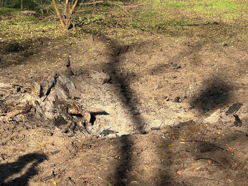 Вирва після падіння уламків дрона на Золотоніщині, 14 листопада 2025 року. Суспільне Черкаси/Анастасія Столбова