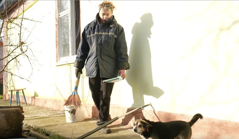 Пані Олена та пес Жук прибирають наслідки атаки дронів на Золотоніщину 14 листопада 2025 року. Суспільне Черкаси