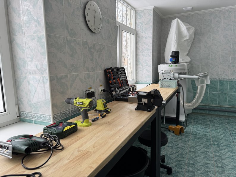 "Це майстерня, машинки для обробки куксоприймачів, витяжка, різні інструменти для коригування куксоприймача, шуруповерт, лобзик, фен для нагрівання та коригування самого куксоприймача", — розповів Іван Золотарь.