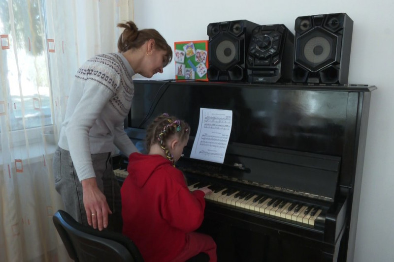 Дев'ятирічна Софійка грає на піаніно "Червону Калину". Дівчинка ще не розмовляє. Вона — одна з вихованиць Мізоцької спеціальної школи, де навчаються діти з мовленнєвими порушеннями.
