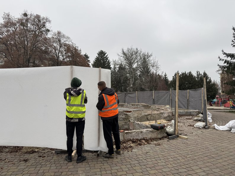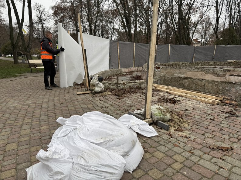 Як розповів Суспільному виконроб підрядної організації Олександр, нині робітники встановлюють захисну огорожу та розпочнуть демонтаж нержавіючих труб і гранітного покриття чаші. Ці матеріали передадуть на баланс КП "Декоративні культури". Далі планують демонтувати й бетонну чашу водограю.