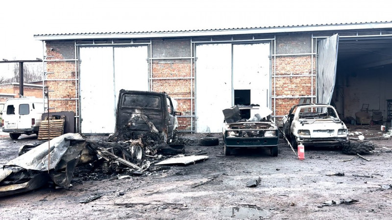 Автомобілі, які згоріли внаслідок атаки РФ по Прилуках на Чернігівщині 23 грудня 2025 року. Суспільне Чернігів
