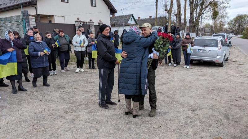 Жителі Немовицької громади Рівненської області зустріли з квітами і короваєм військового Миколу Пацьолу, який після полону повернувся додому.
